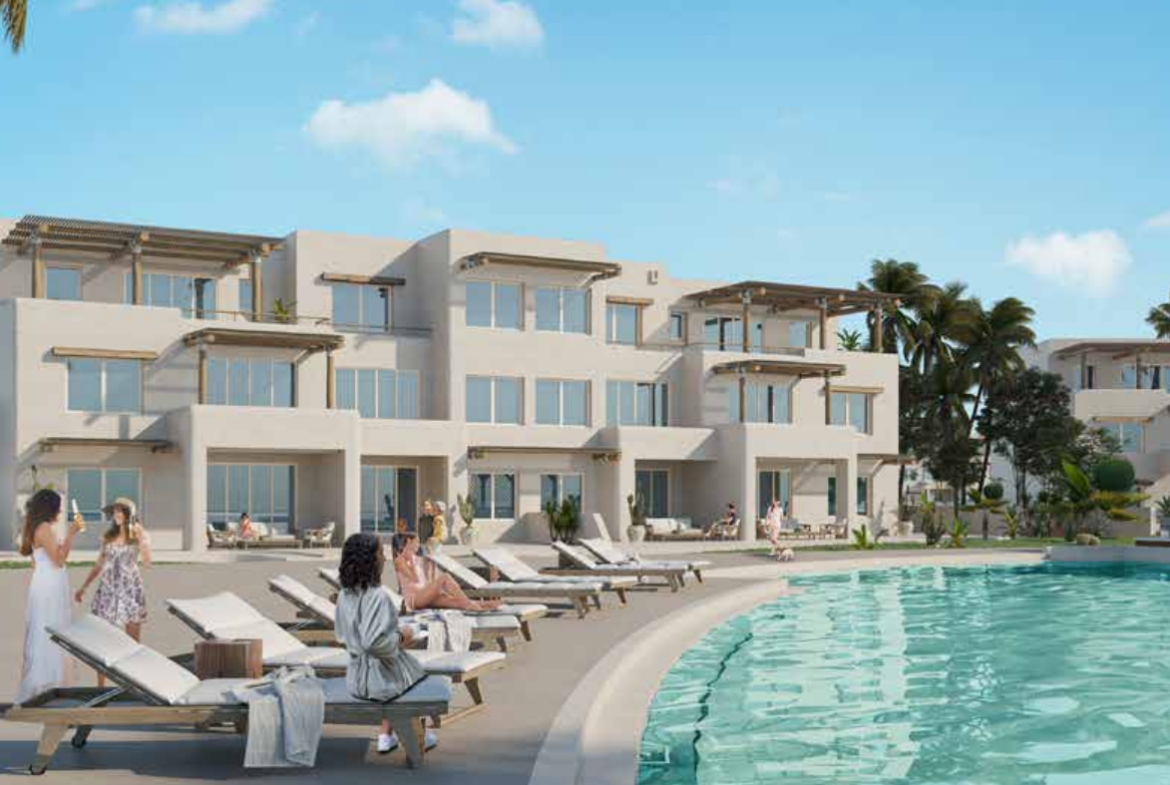 شاليه 2 غرفة نوم تقع فى هاسيندا ويست بالم هيلز للتطوير العقاري فى رأس الحكمة. على 111 متر مربع بها 2 حمام.